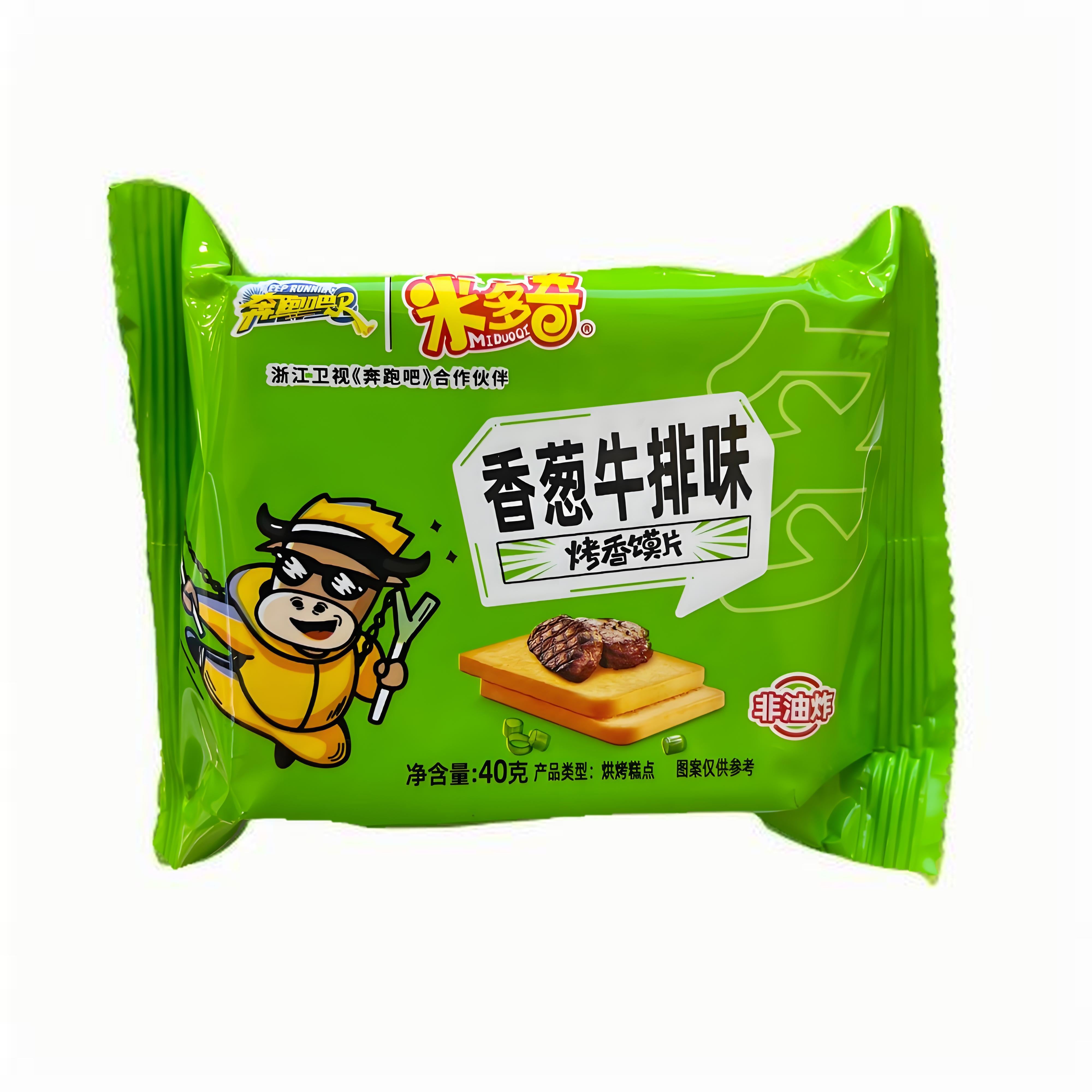 These toasted bread chips are infused with a savory blend of scallions and steak seasoning, delivering a rich, meaty flavor with a hint of aromatic onions. The crispy texture combined with the bold, steak-inspired taste makes them a flavorful and satisfying snack.