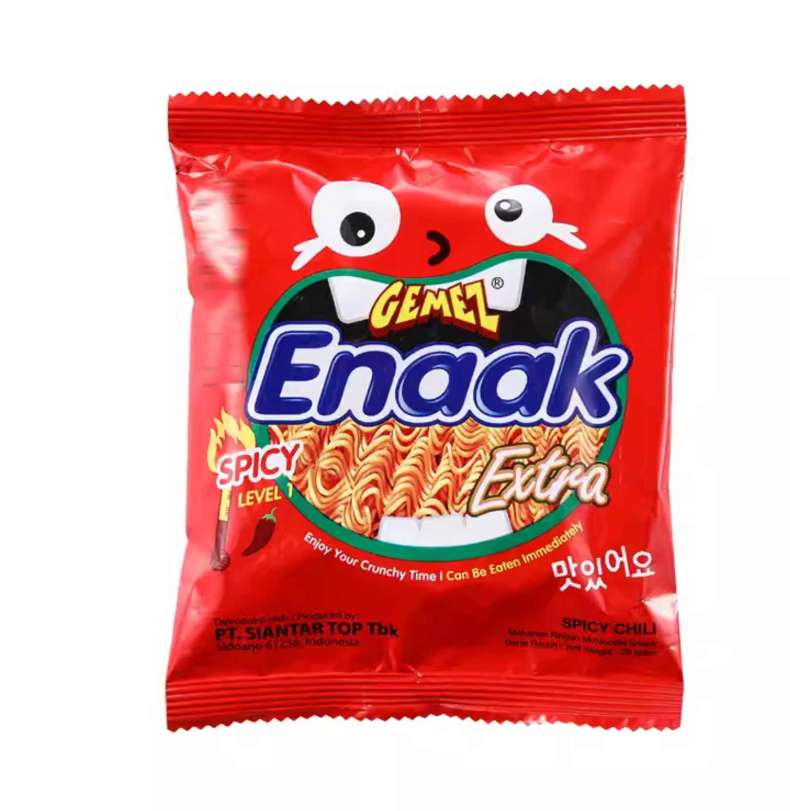 These crunchy noodles are packed with a bold, spicy flavor that delivers a fiery kick with every bite. The crisp texture combined with the intense heat makes it a perfect snack for spice lovers.
