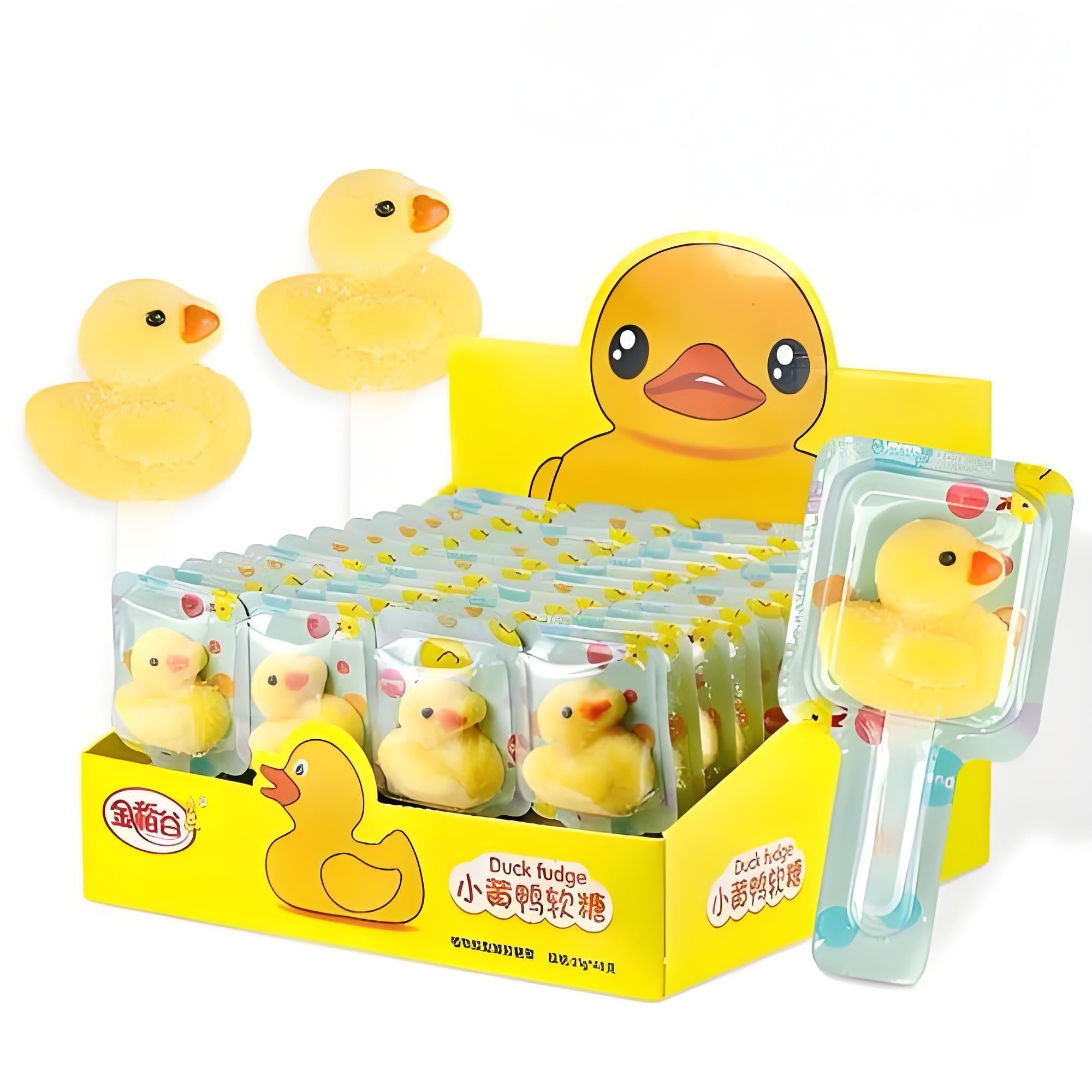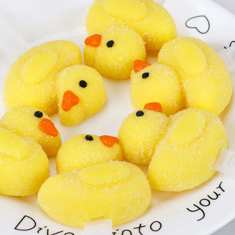 Adorable duck-shaped gummies, chewy and bouncy with a sweet fruity flavor, making every piece a fun and delightful treat full of joy.
